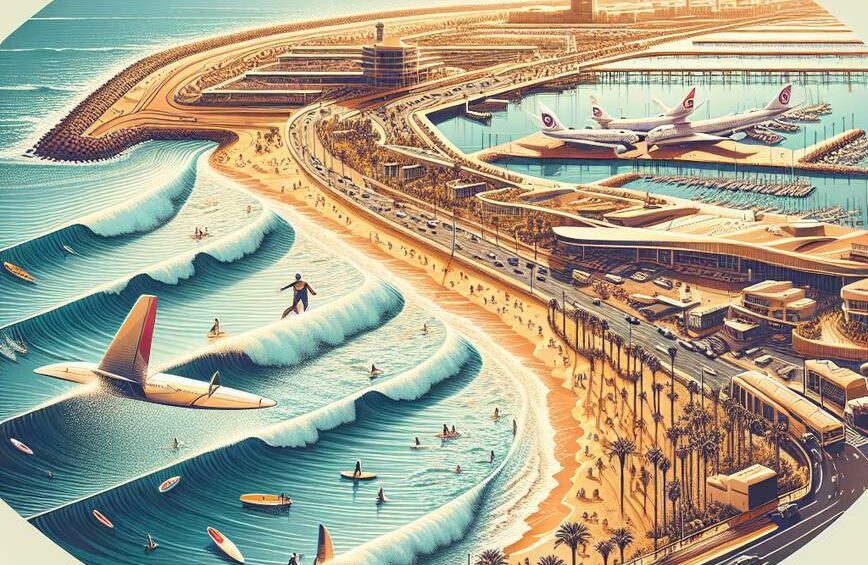 Podróż z Taghazout, urokliwej wioski surferskiej niedaleko Agadiru, na lotnisko w Marrakeszu to około 175 kilometrów. Średni czas przejazdu wynosi około 2 godziny 30 minut, w zależności od warunków na drodze i ruchu. Trasa odwrotna – z lotniska Marrakesz do Taghazout – wiedzie tą samą drogą w przeciwnym kierunku, zapewniając równy komfort osobom przybywającym do Taghazout.